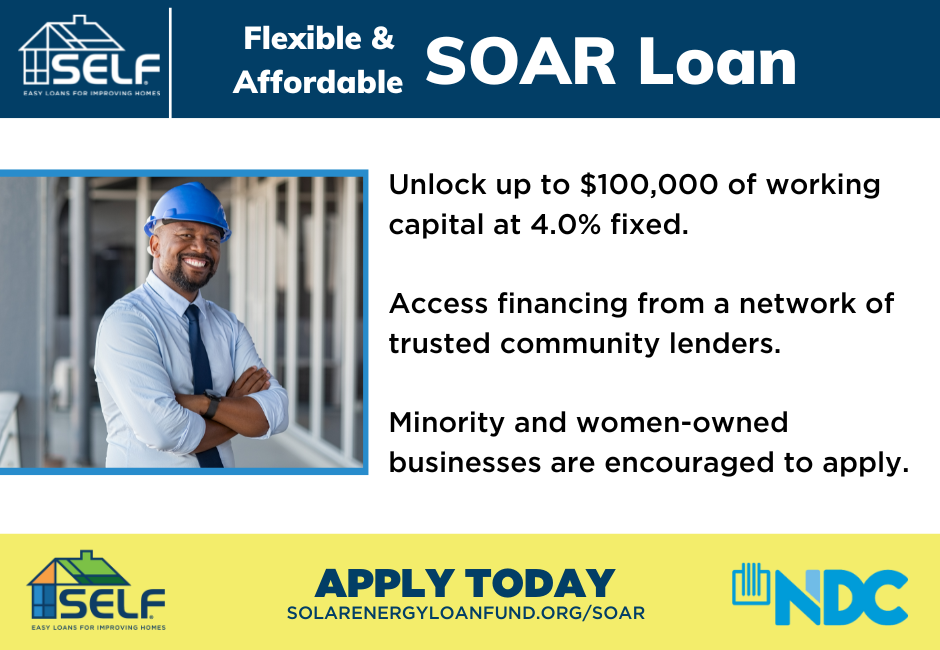The Solar and Energy Loan Fund (SELF) is a nonprofit green bank – CDFI that finances sustainable property improvements. Through innovative and equitable financing solutions, SELF empowers homeowners, contractors, landlords, and affordable housing developers to implement energy-efficient, climate-resilient, and renewable energy projects, ultimately reducing carbon emissions and creating green jobs and a more equitable and sustainable future. For more information, visit https://solarenergyloanfund.org/.